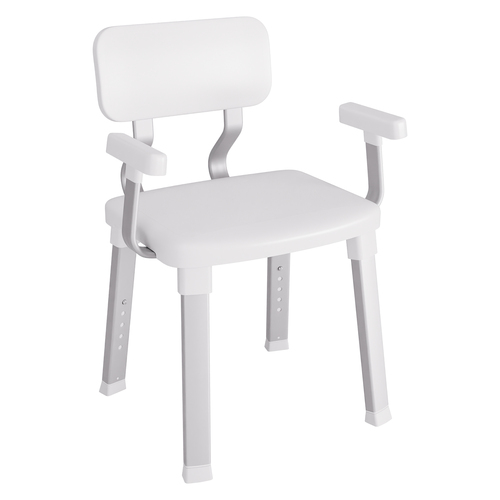 evekare manufactures and supplies a range of bathroom and shower aids that can help you gain the confidence to carry out daily hygiene tasks independently. This deluxe freestanding shower chair features a large seating area, backrest and arm rests for increased comfort and support, and a heavy-duty aluminium frame with height-adjustable legs. The non-slip feet provide added security for use in a shower enclosure or in a bathtub.