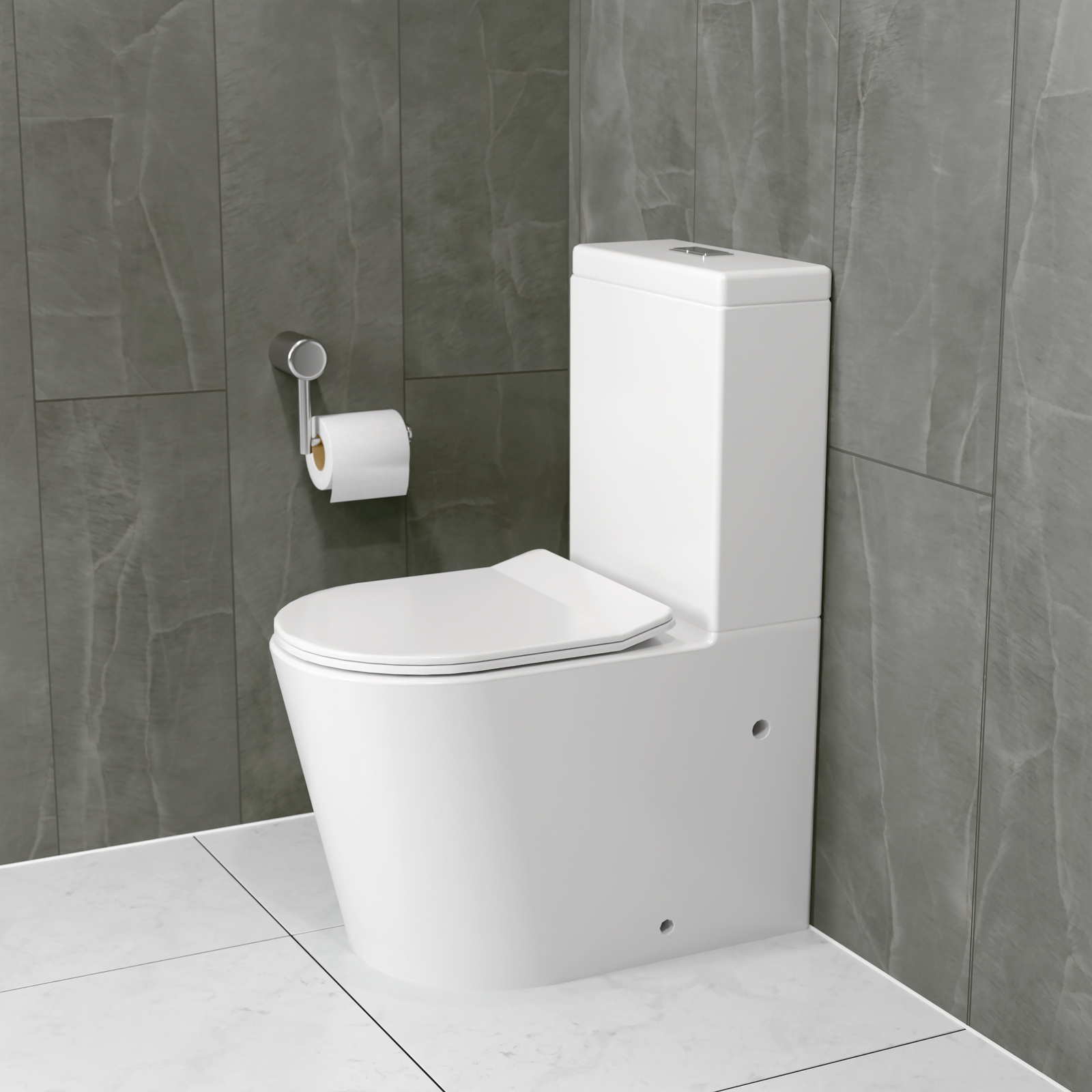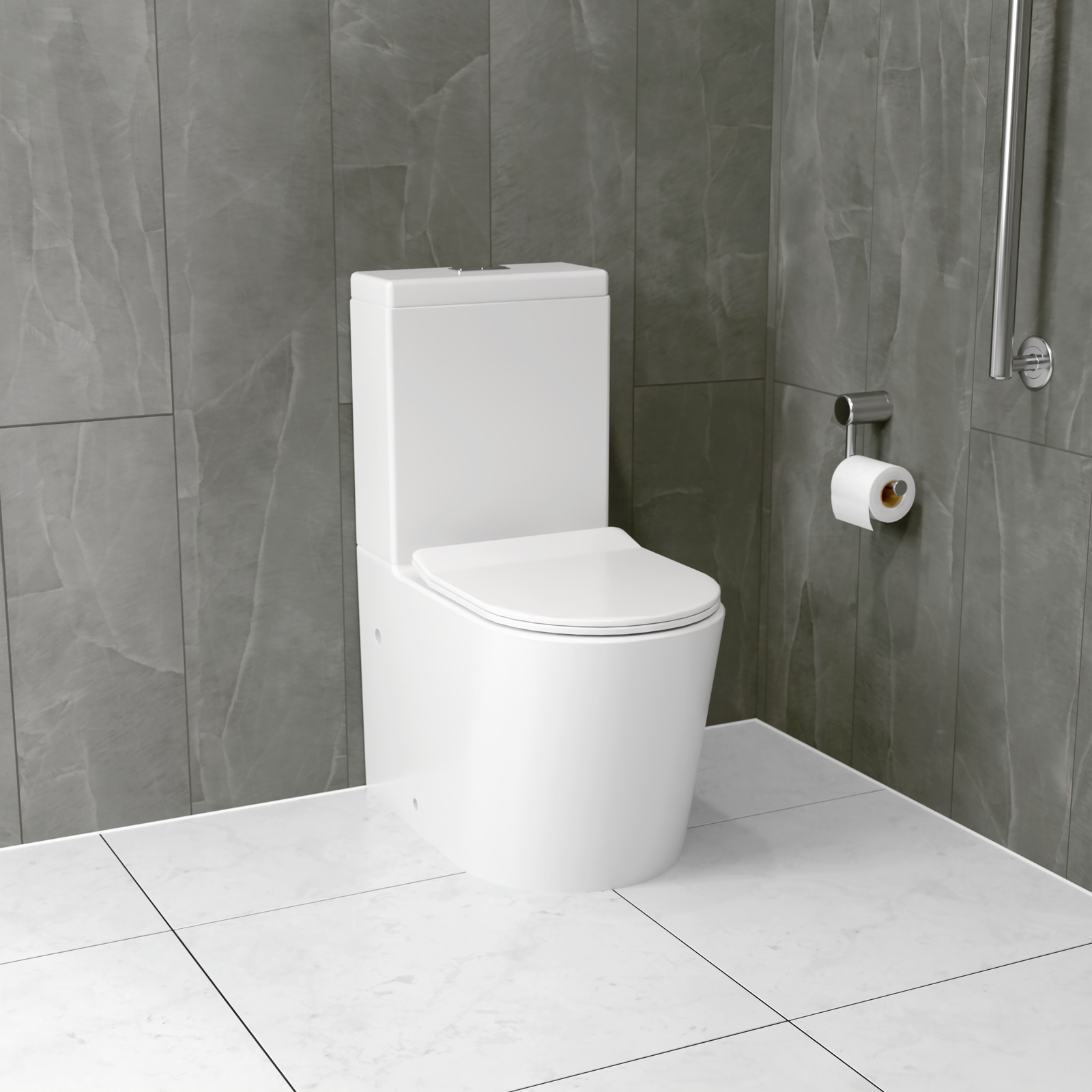 Raised height toilets have a higher bowl than regular toilets, making it easier for people with reduced mobility to get on and off the toilet. This back to wall toilet pan features a stylish slimline toilet seat. Suitable for independent living and age care, with WELS and watermark compliance